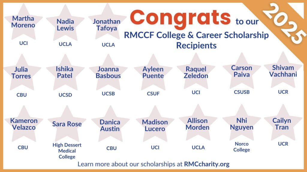 RMC Charitable Foundation is proud to support the next generation of healthcare professionals through our scholarship programs. In 2025, $20,000 were distributed to deserving students. Join us in Spring 2026 to learn more about our 2026 Program.